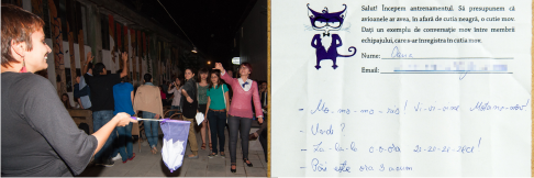 Am avut și un antrenament de imaginație inedit. După ce scriau pe hârtie, o făceau avion și o lansau spre Vera, care s-a antrenat toată seara să prindă imaginația într-o plasă de fluturi (mulțumim, Magda!)