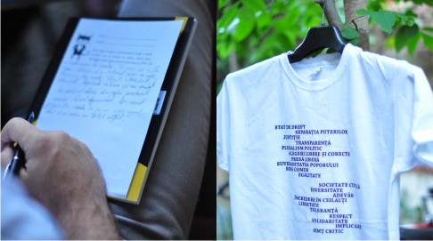Până la 8, am strâns antrenamentele de imaginație (o povestire care să înceapă ca Metamorfoza lui Kafka, le vom scana curând), apoi le-am premiat cu un tricou cu valori și principii democratice. Încă n-a venit sezonul protestelor, dar va să vie.