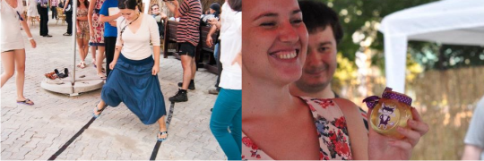 Concursul de mers în șlapi pe benzi adezive a fost foarte rapid, dar amuzant, și s-a soldat cu un premiu lipicios – un borcan de miere de țară cu Motanov.