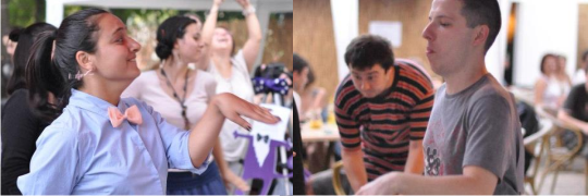 A început atunci concursul de darts: 30 de baloane în care așteptau bilețele cu premii (27 de beri și 3 abonamente). Mulțumim, Andreea și Andruk! În paralel era antrenamentul de imaginație – trăgeai un cuvânt și îl lipeai pe frunte, apoi căutai alte cuvinte la ceilalți participanți, cât să-i faci o familie inventată cât mai numeroasă. Premiul a fost o sacoșă cu dl antrenor de imaginație luat pe sus de baloane, rev de pov nr 4, gumă și balonificator cu clăbuc (!).