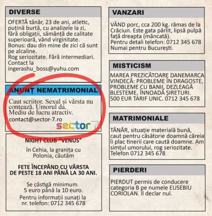 Bănuind că avem scriitori cu asemenea semnalmente în anturaj, am fost de acord să punem în legătură cererea cu oferta.