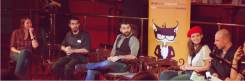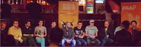 În prima parte, Simina (ca inițiator), Traian (ca teaser), Anca Sandu (ca voluntar), Georgian Constantin (ca autor), Marius Chivu (ca tutor al atelierului de scriere creativă) au vorbit un pic despre experiența lor aproape de revistă.